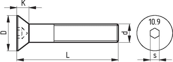 | Popis výrobku | Zápustný šroub s vnitřním šestihranem. Poznámka: Šrouby se dodávají s částečným nebo plným závitem. Toto není specifikováno podle normy DIN. |