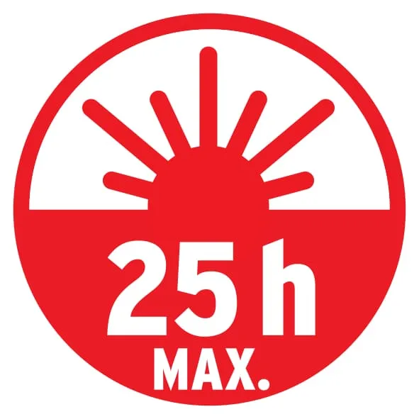 • Doba svícení: 100 % – 3h, 75 % – 4h, 50 % – 6h, 25 % – 12h, 10% – 25h