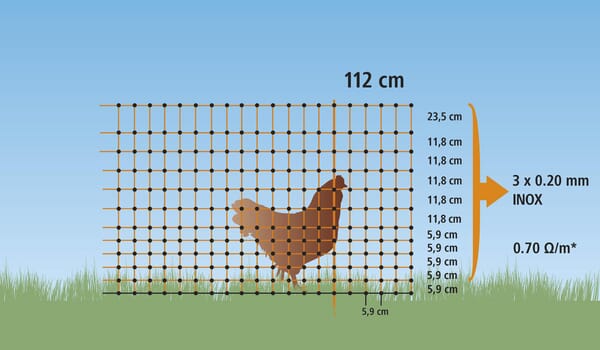 Síť pro drůbež 25 m, dvojité bodce 106 cm, zelená, nevodivá