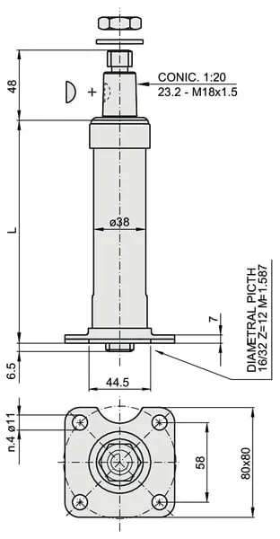 | Technická informace | Vhodné pro řídící jednotky Danfoss OSPB a OSPC. Napojení volantu je kuželové (1:20) vhodné pro volanty OTPBS. Zajišťovací matice s líc. perem jsou součástí dodávky. |