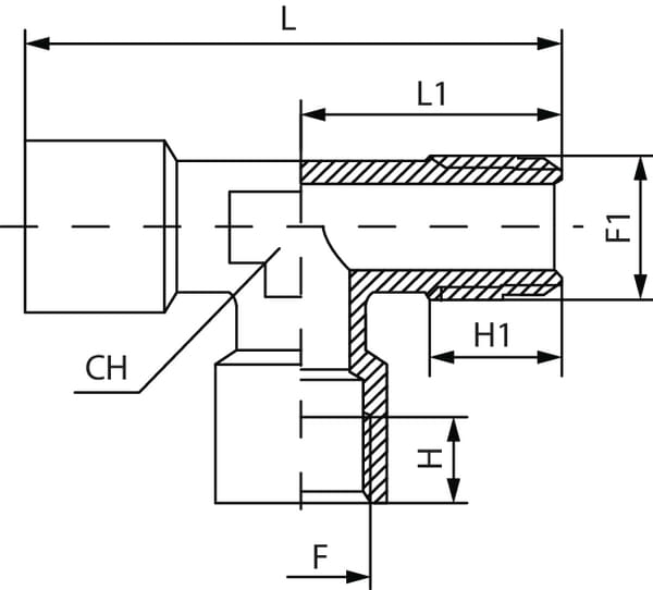 Spojka třícestná mužská „T“ typu TCFFM