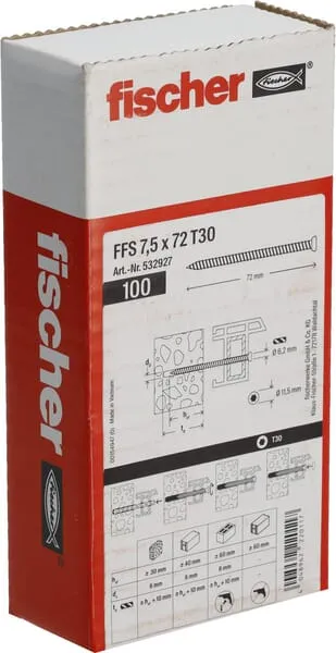 Šroub do okenních rámů/betonu FFS 7,5X72 T30, 100 ks