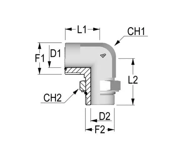 Úhlové hrdlo k zašroub. ORFS/UNF