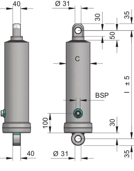 | Typ upevnění – připojení válce | Vývrt |