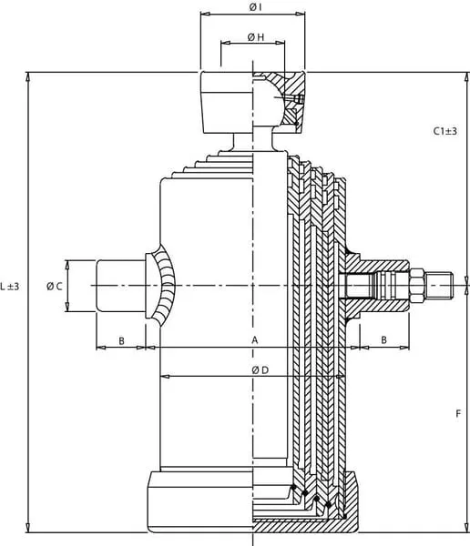 | Popis výrobku | Teleskopický válec s koulí a pánví, 5/6-stupňový, typ TC |