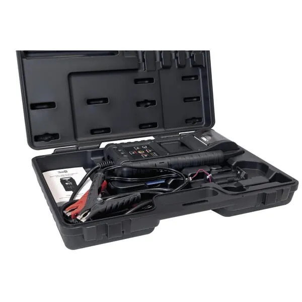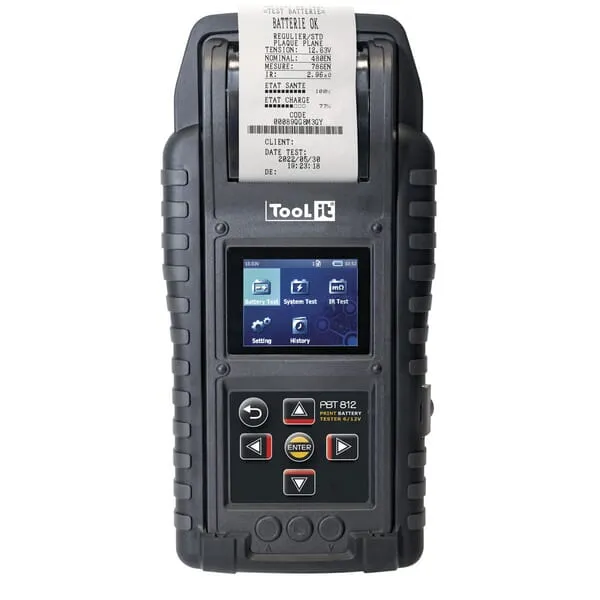 | Popis výrobku | Profesionální tester baterií PBT 812 je velmi přesný přístroj s integrovanou tiskárnou k testování napětí baterií, startovací kapacity a dynama. Je vhodný pro většinu olověných baterií. Lze s ním testovat napětí a stav nabití baterie, napětí při startu a napětí naprázdno, nabíjecí napětí a napětí během nabíjení. Výsledky lze ihned vytisknout pomocí integrované termotiskárny. DHC software, dodávaný na CD, umožňuje rychlý a snadný export dat do počítače. |