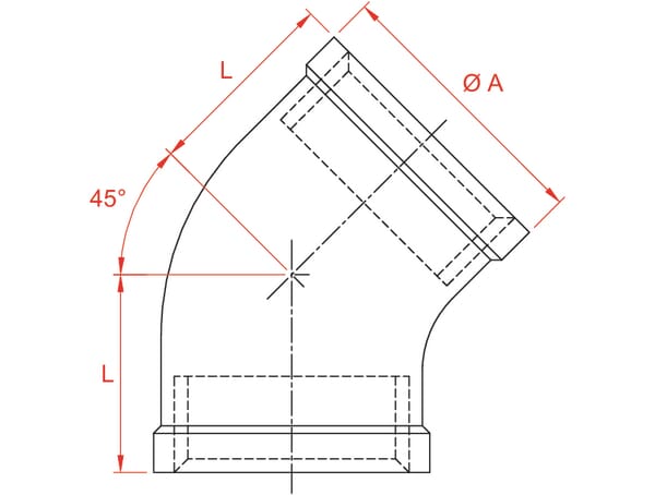 Koleno 45° ner.oc. 2xVnit.z. 1 1/2"