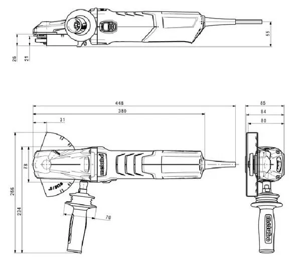 | Popis výrobku | Výkonná bruska s plochou hlavou pro práci v ostrých úhlech až do 43°. Byla speciálně vyvinuta pro odstraňování svářkové strusky, rzi nebo laku v úzkých rámových konstrukcích a jiných hůře přístupných prostorách. |