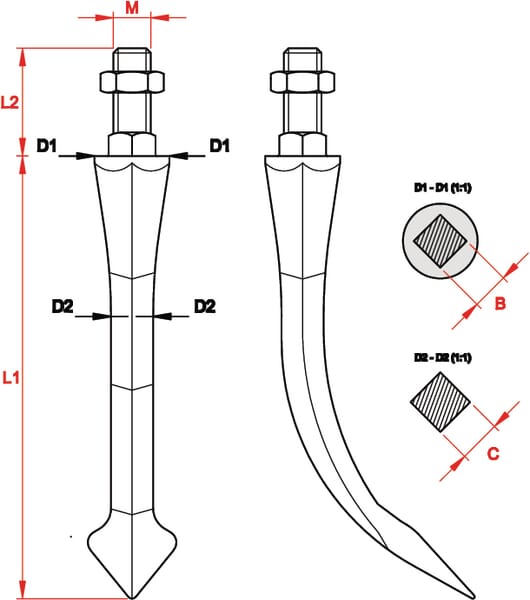 Univerzál – hřeby bran se lžící – speciální tvrdost, ohnuté