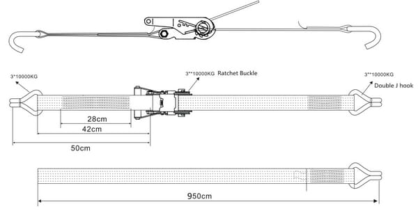 Upínací popruh typ 75, s ráčnou a hákem, 10 m