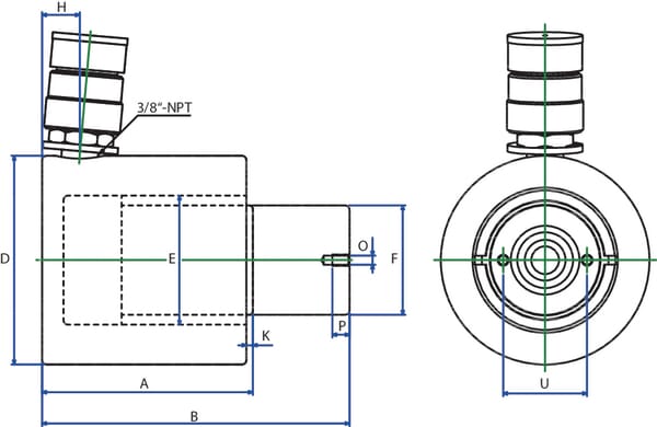 HVzdálenost středu připojení oleje ke konci válce – strana válce 17,5 mm