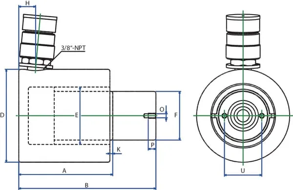 HVzdálenost středu připojení oleje ke konci válce – strana válce 19 mm