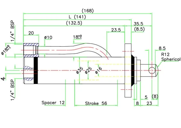 | Vzdálenost konce válce ke konci tyče | 176 mm |