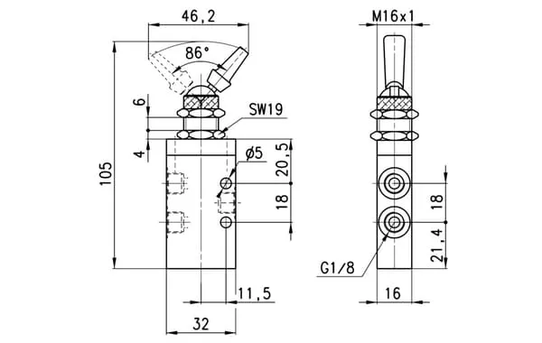 Ventil 3/2-cestný, ruční pákový