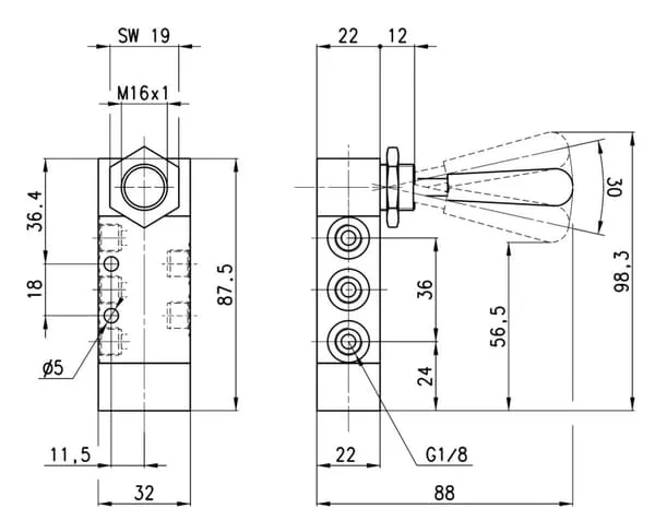 Ventil 5/3, ruční pákový