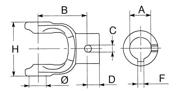 | Popis výrobku | Vidlice na náboj s otvorem drážka těsného pera a otvor se závitem série 1 |