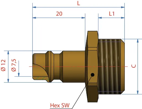 Vnější rychospojka, vnější závit M 16×1,5 mm
