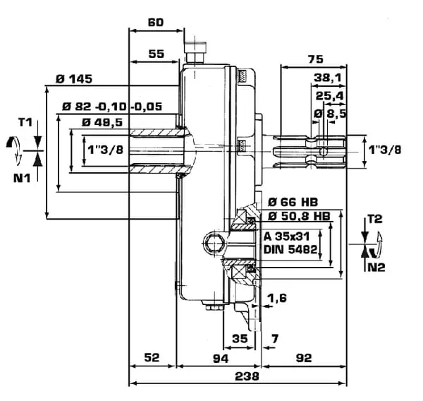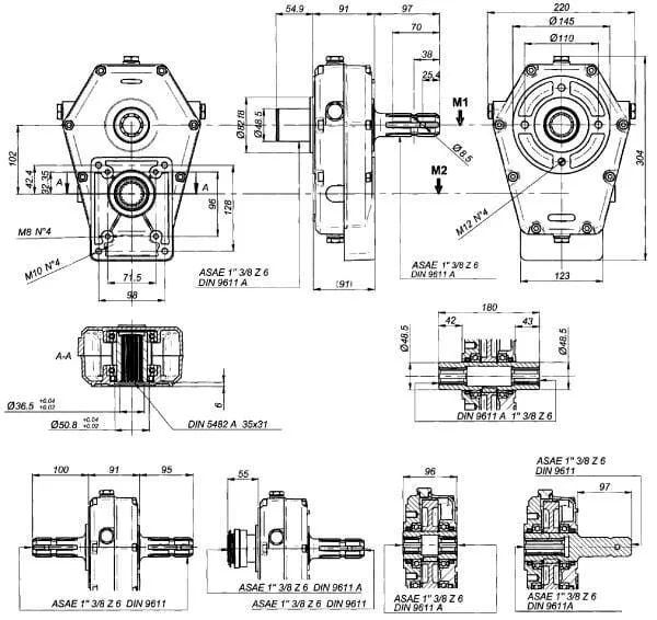 Úhlová převodovka pouzdro/hřídel