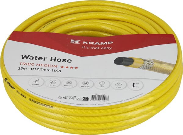 | Podrobnosti | Hadice na vodu určená pro poloprofesionální použití při zavlažování a čištění v zemědělství, stavebnictví a průmyslu. Pletená výztuha zajišťuje vysokou odolnost proti ohybům, uzlům a dobrou odolnost proti tlaku. Hadice je vyrobena z PVC, které neobsahuje ftaláty, kadmium, baryum ani olovo, vyznačuje se výjimečnou odolností proti UV záření, dobrou odolností proti opotřebení a zachovává si pružnost i při nízkých teplotách. Čtyřvrstvá struktura: pletená výztuha; vnitřní vrstva: černé PVC (odolné proti řasám) z až 25 % recyklovaných materiálů, střední vrstva: žluté PVC, vnější vrstva: průhledné žluté PVC. Provozní teplota: -10/+60 °С |