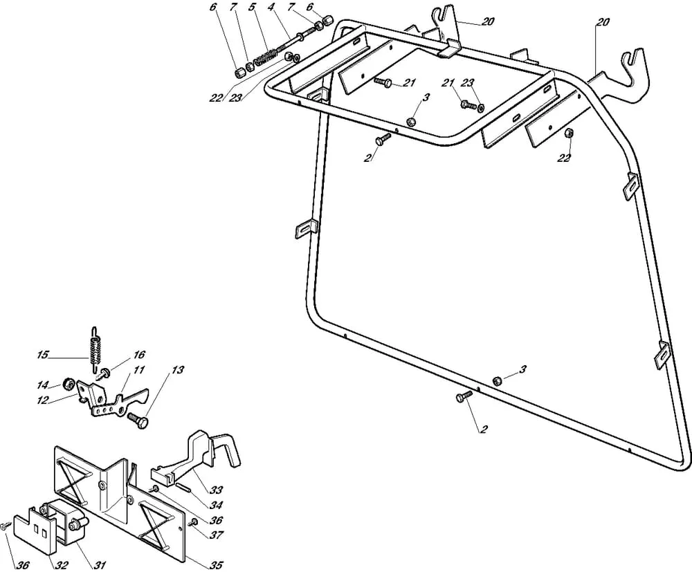 Zařízení k zachycení trávy – pevný díl pro Castelgarden typ 92-92 Hydro – rok výroby 2006