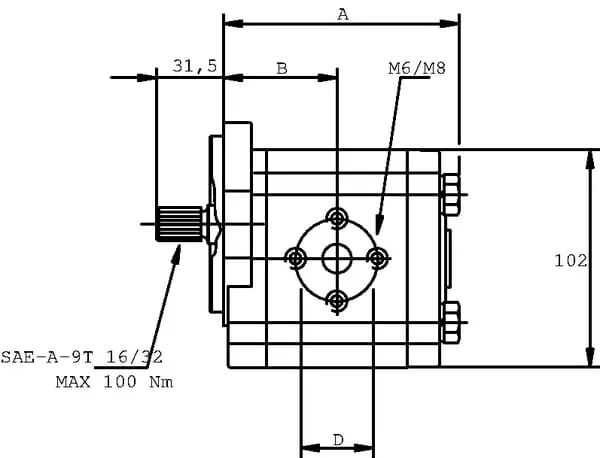 S2 | Standardní | 100 mm | 8,26 cm³/rev | 15,5 mm | +Spline shaft Z=9 16/32. | 03 | SAE-A | Hliník | 82,55 mm | 300 BAR | 2 | 9 | 3500 r/min | 600 r/min | 2 | Levotočivé (CCW) | 250 BAR | 280 BAR | n/a | Hliník | 30 mm | 30 mm | 106,2 mm | 48,2 mm |